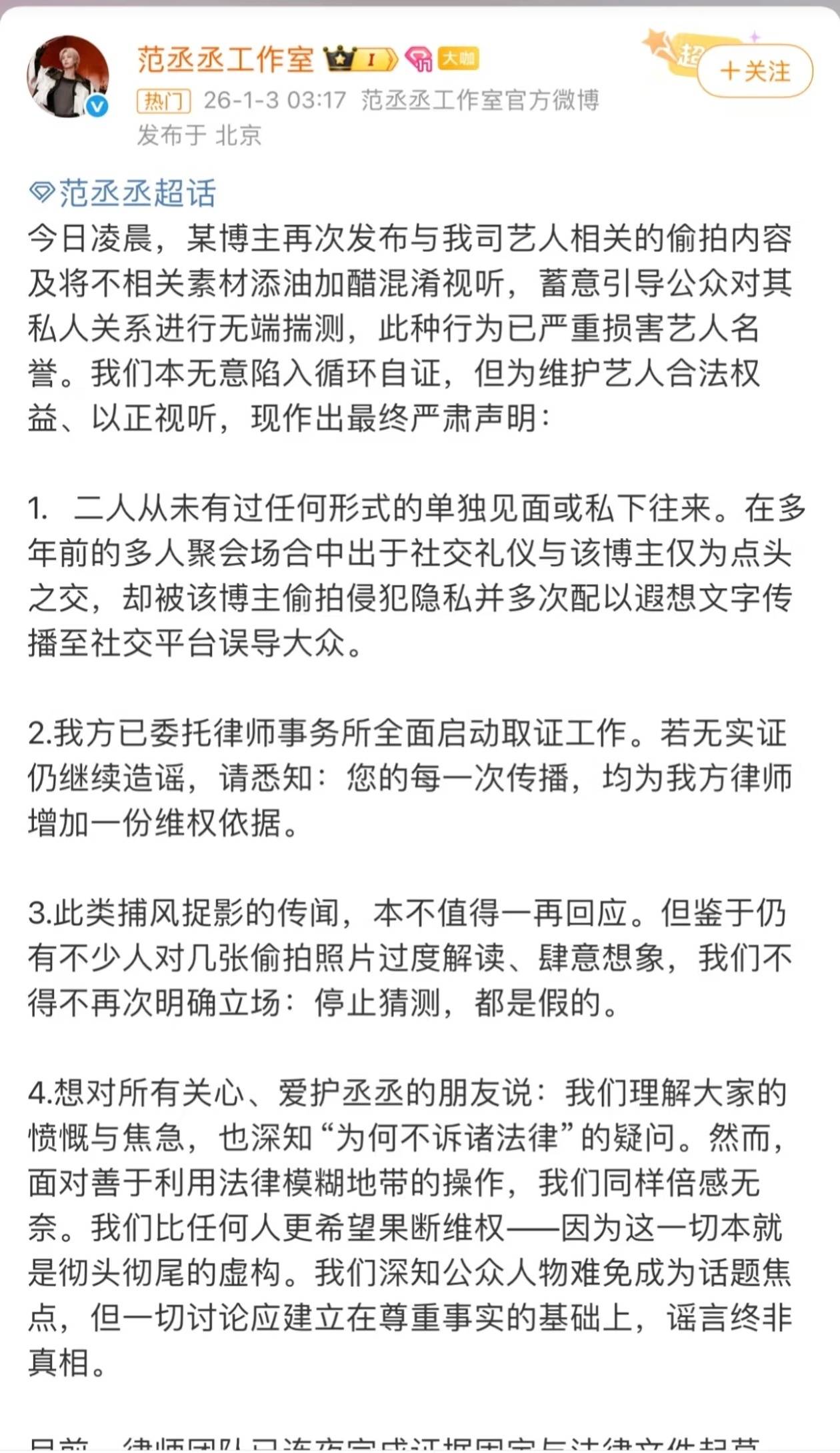 工作的起因可谓开年“大型碰瓷现场”。别往本人脸上贴金”。相当于公开喊话司晓迪:“咱俩底子不熟,后续还删博疑似转和海外平台,守住底线;被范丞丞玩出了新花腔!工做室担任法令层面的硬刚,